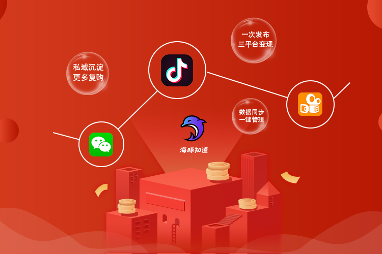 作为首家实现三端融合内容变现解决方案的服务商,海豚知道利用抖音的推荐算法,挖掘潜在优质粉丝;利用快手的电商流量,降低获客推广成本;利用微信的社交属性,搭建专属私域流量,构建了从公域流量获客、到私域流量复购的完整闭环,开启更高效的内容变现方式,助力国内的内容创作者快速变现。