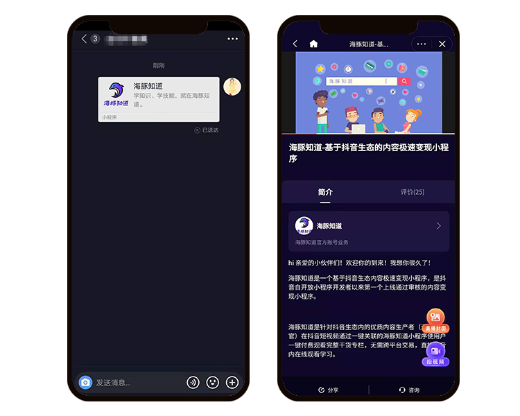 当用户在平台内,将小程序分享给好友时,用户点击对话框内的小程序卡片即可快速进入。通过好友之间的相互分享,完成小程序的社交拉新。