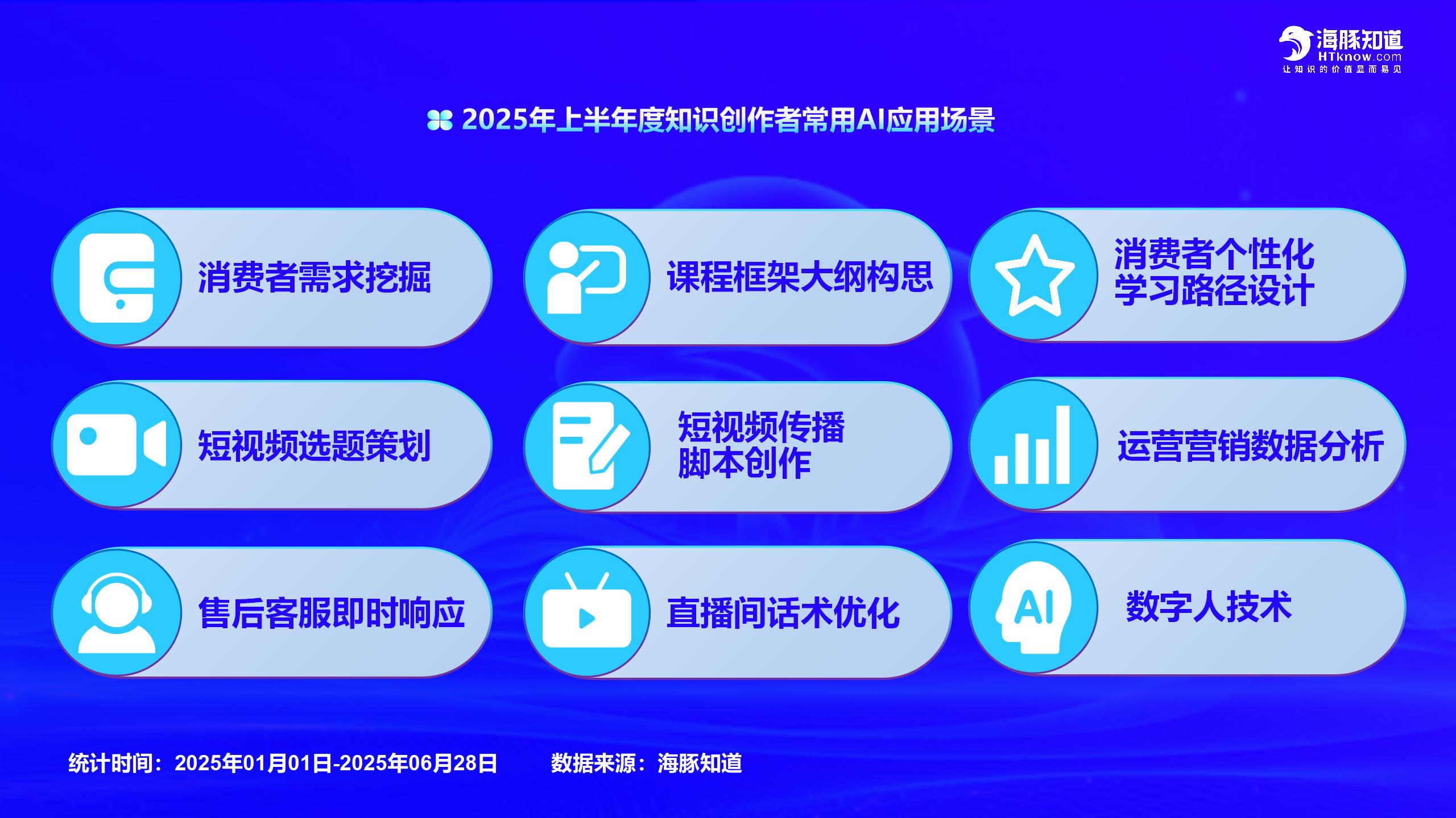 2025年知识付费领域的AI应用已从工具辅助阶段迈入全链路智能重塑期,渗透至消费者需求挖掘、课程框架构思、学习路径设计等核心环节,并覆盖短视频创作、直播运营及客服响应等场景。面对这一趋势,知识创作者须应建立“AI赋能提效+自我成长驱动”的发展思维,将AI定义为效率执行者,对视频脚本编辑、运营数据解析等环节进行创作提效。而知识创作者需持续强化自身不可替代的专业价值,提升专业深度、强化资源整合能力,拓展与消费者的沟通连接模式,塑造陪伴消费者终身成长的综合素质。