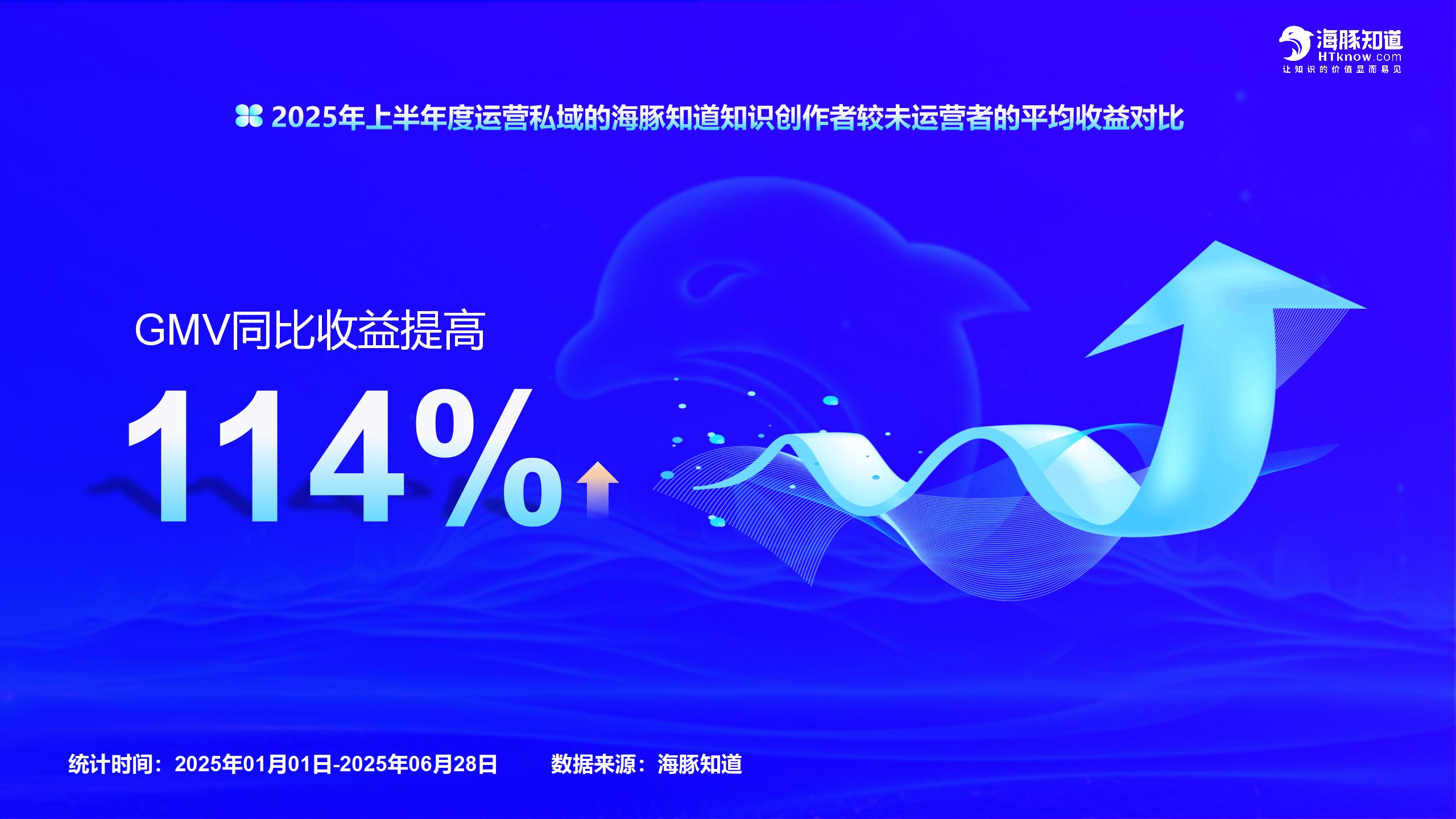 面对各公域平台赛马机制强化所导致的流量成本持续攀升,知识创作者正逐步加强私域运营重心,以构建稳定可持续的发展路径。海豚知道平台上半年数据显示,运营私域的知识创作者收益较未运营者显著高出114%,侧面反映了知识创作者从公域流量争夺转变为消费者长期价值深耕的战略必要性。