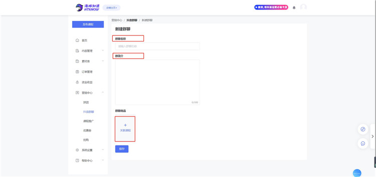①当达人老师想要建立一个专属的学习群、进行私域流量转化时,便可以通过「抖音群聊」功能创建一个学习交流群,而且可以设置多节课程与这个学习群进行关联,使更多的学员能够通过不同的课程进入这个群聊。