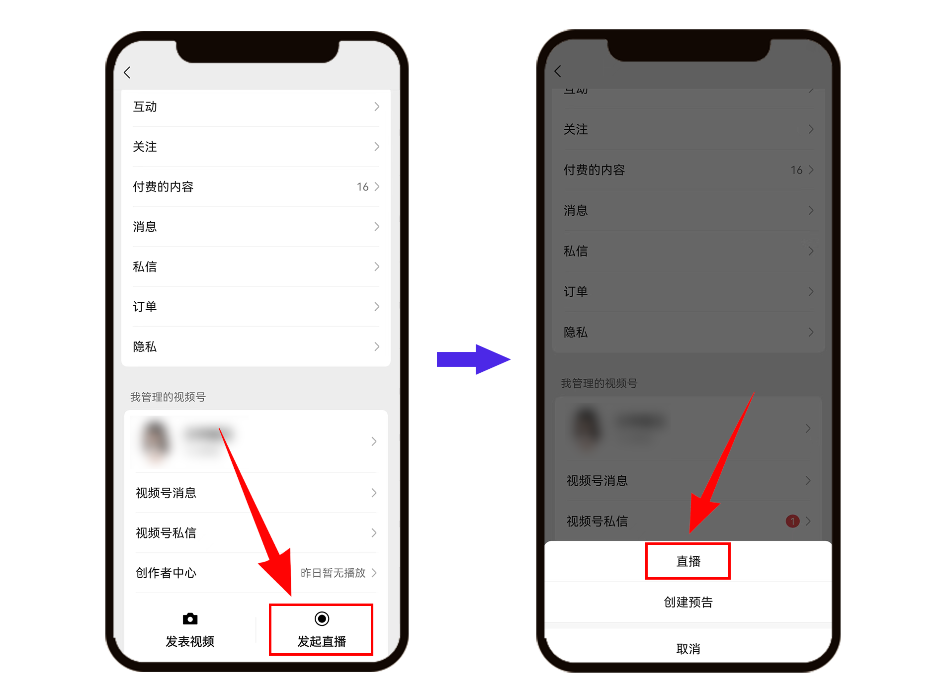 ①打开微信→选择【发现】→点击【视频号】→点击右上角【个人中心】;