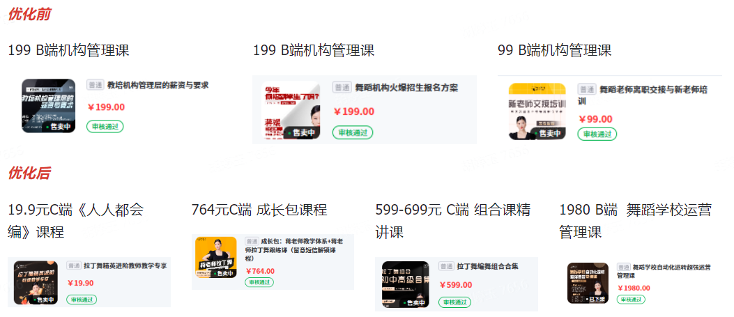 她以19.9元的《人人都会编》课程作为引流课,吸引大量学员进入私域;接着推出764元成长包课程、599-699元组合课作为精讲课程,满足不同层次学员需求;同时,还为机构管理者定制了1980元的舞蹈学校运营管理课程,助力其提升管理效能。
